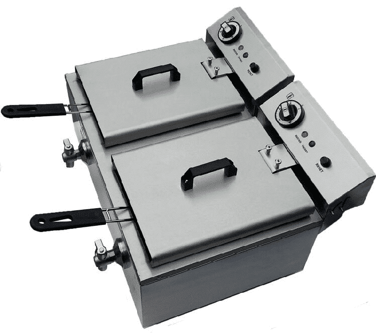 Friteuză dublă cu două coșuri, 6000 W, 2×10 L, fără robinet de scurgere