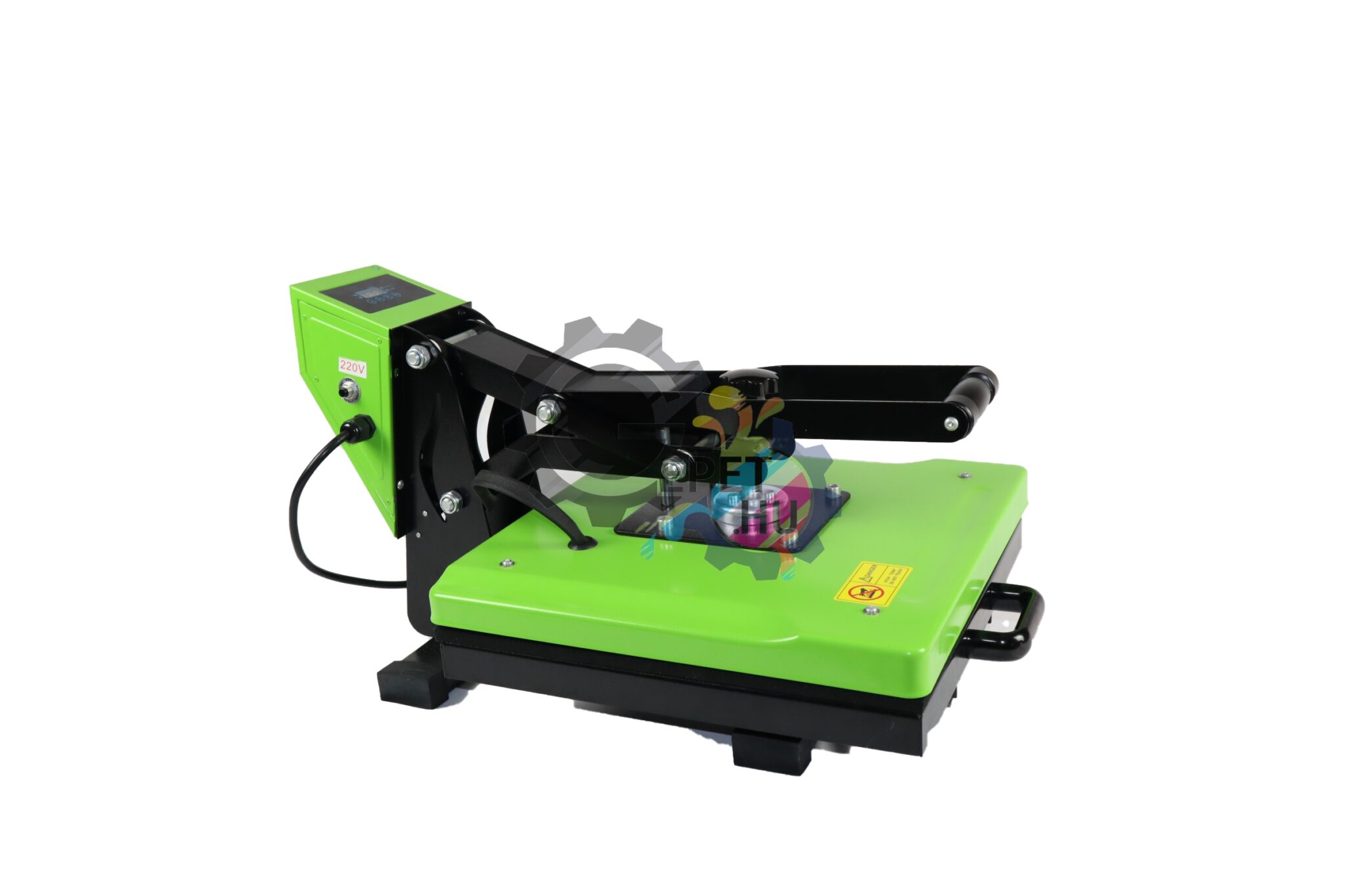 Presă compactă, profesională, cu mecanism de tip clapetă, ideală pentru lucrări de sublimare și transfer termic. Disponibilă în trei dimensiuni diferite, adaptându-se nevoilor tale de producție.